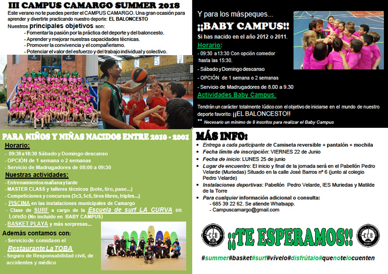 Ya está aquí el 'Campus Camargo Summer', organizado por la Agrupación deportiva Amide de Baloncesto de Camargo. La manera perfecta de disfrutar del verano entre amigos, canastas, practicando ocio de calidad y educación en valores