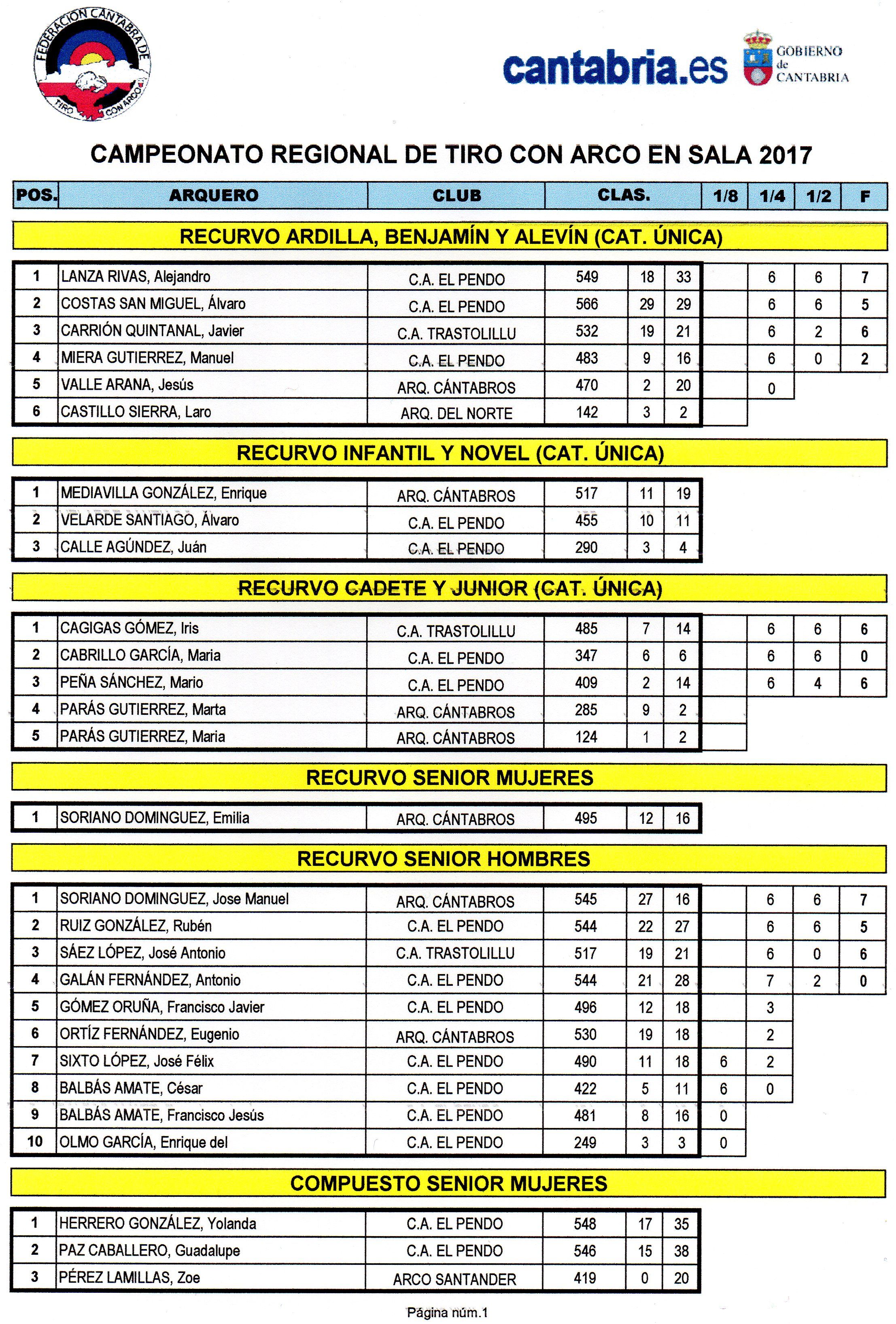 Adjuntamos en este artículo, en dos archivos adjuntos, las calificaciones finales del Campeonato facilitadas por la 'Federación cántabra de Tiro con Arco'...